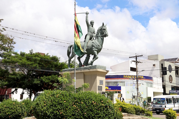 Vimos el Monumento a Simón Bolívar es una escultura representando al libertador a lomos de un caballo, empuñando en su mano derecha una espada. Fue colocada el 24 de abril de 1983 en conmemoración del bicentenario del nacimiento de él. El acceso es gratuito, espacio al aire libre. Se encuentra en la Avenida Irala, las Américas y la Calle La Paz.