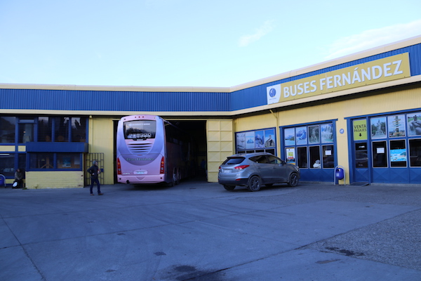 Bajamos del taxi en la terminal de autobuses Buses Fernández, aquí dejamos el equipaje, para ir a visitar Punta Arenas de forma más libre.