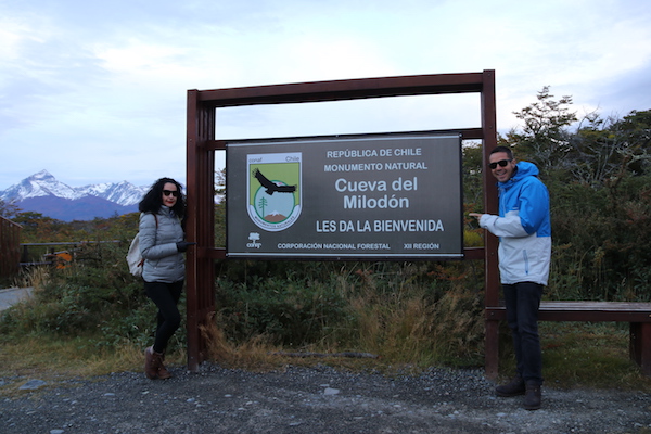 Salimos de Puerto Natales dirección a la Cueva del Milodón, está a una distancia de 25 km al norte, en la ladera occidental del cerro Benítez, en unos 30 minutos de trayecto llegamos a ella. Esta área tiene una superficie de 189,5 hectáreas, está formada por tres cavernas, la del medio, la chica y la del Milodón, esta última siendo la que mayor dimensiones tiene, cuenta con más de 200 metros de profundidad por 80 metros de ancho y 30 metros de alto, el camino hasta llegar a la entrada de la cueva es de unos 350 metros de longitud y en ese sendero hay colocados varios carteles informativos y explicativos de la fauna y flora, y de como se originó la cueva. A la entrada de ella hay un milodón a tamaño real, animal prehistórico, que recibió este nombre de Milodón por su descubridor Hermann Eberhart, un explorador alemán que en el año 1895 encontró restos de pelaje de este mamífero herbívoro por diferentes partes de la cueva, realizó una larga investigación llegando a la conclusión que era un animal extinguido, llamándolo Milodón. Hay un museo interpretativo que da una explicación de este mamífero. Esta área en el 1968 fue declarada Monumento Histórico por el Ministerio de Educación y en 1993 se incorporó al Sistema Nacional de Áreas Silvestres Protegidas del Estado, en Monumento Natural, hoy en día es administrado por CONAF.