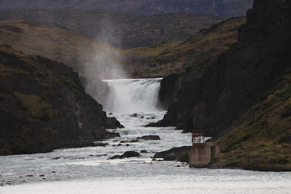 Terminada la comida y de hacer cientos de fotos y grabaciones del lugar, subimos al vehículo para dirigirnos hasta el Mirador de la Cascada llamada el Salto Grande, es considerado como el salto de agua más grande del Parque Nacional Torres del Paine, es una cascada de 10 metros de altura, vierte sus aguas en el lago Nordenskjöld, en los alrededores, hoy en día, se pueden ver los restos calcinados de lugar debido al incendio que se produjo en la zona en el año 2011, que acabó con miles de hectáreas llenas de naturaleza.