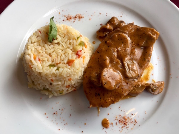 - Hostería Pehoé, salmón en salsa de tomate.