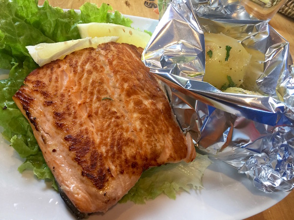 - Restaurante el Bote, salmón a la plancha.