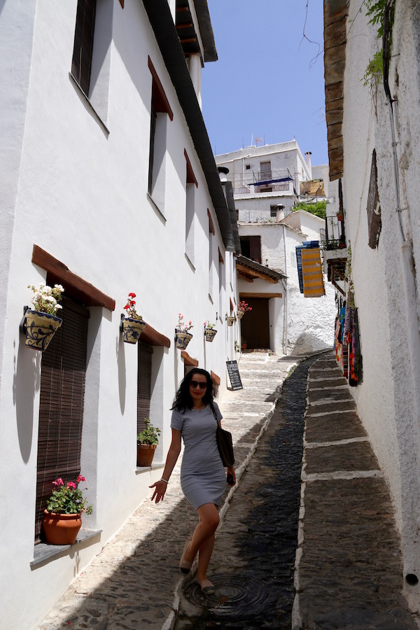 El domingo volvimos a coger nuestro vehículo, esta vez poniendo dirección al pueblo de Pampaneira, el trayecto fue de 1 h y 32 minutos, hicimos unos 117 km. Aparcamos el coche a la entrada del pueblo en el parking al aire libre gratuito, a la salida de él hay otro. ¡Recuerda!, la localidad hay que recorrerla a pie, los coches no tienen permitido el acceso a gran parte del casco urbano, no es por nada en especial, es simplemente porque que las calles son muy estrechas y no tienen capacidad para que circulen los vehículos.