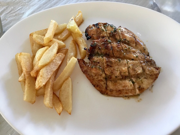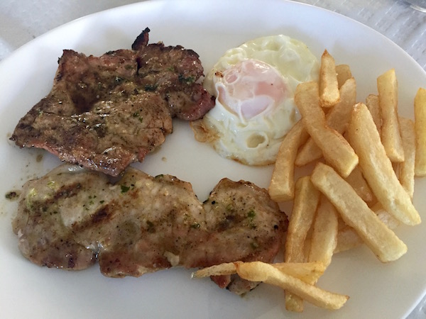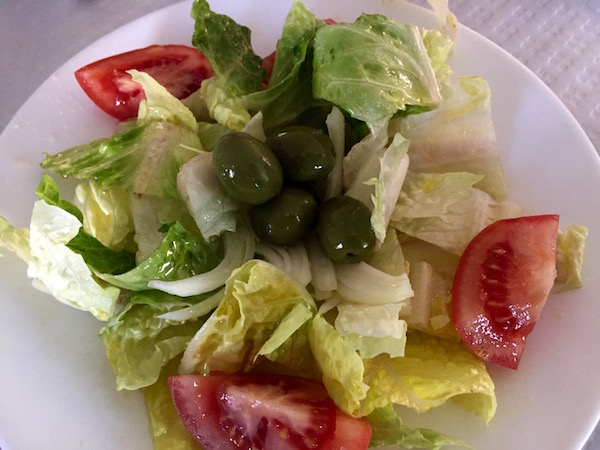Nosotros fuimos hasta el Restaurante El Pintao donde pudimos probar el menú del día, de entrante una ensalada al centro, de primer plato pedimos un salteado de espárragos con huevo, de segundo plato para uno fue lomo con huevos y para el otro una pechuga de pollo, de bebida una botella de agua mineral y una coca cola, de postre una pieza de naranja. Pagamos un total de 20 €. El teléfono de contacto es: (+34)950351306. La dirección es Avenida Mártires n.º 36.