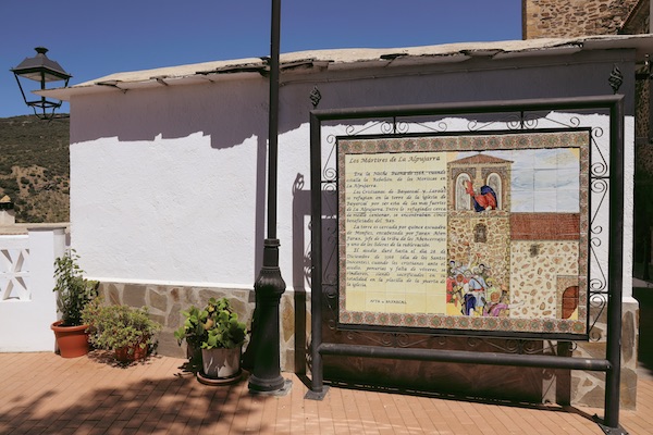 En la placilla que hay junto a la Iglesia de San Francisco Javier, se halla una pequeña fuente, llamada de la Placilla, al lado de ella se han colocado unos azulejos con el siguiente texto: «La prisa no se conoce en la Alpujarra, nadie tiene prisa, todos escuchan y hablan una filosofía muy acertada, deberíamos de copiar esta forma de vivir en la Alpujarra», Jesús Gandia (escritor). Así como un mural explicativo de Los Mártires de La Alpujarra «Era la nochebuena de 1568, cuando estalla la rebelión de los moriscos en La Alpujarra, los cristianos de Bayárcal y Laroles se refugian en la torre de la iglesia de Bayárcal, por ser esta de las más fuertes de La Alpujarra. Entre los refugiados, cerca de medio centenar, se encontraban cinco beneficiados del Rey. La torre es cercada por quince escuadras de Monfies, encabezada por Farax Aben Farax, jefe de la tribu de los Abencerrajes y uno de los líderes de la sublevación. El asedio duró hasta el 28 de diciembre de 1568 (día de los Santos Inocentes) los cristianos ante el asedio, las penurias y la falta de víveres se rindieron, siendo sacrificados en su totalidad en la placilla de la puerta de la iglesia» El acceso es gratuito, espacio al aire libre.