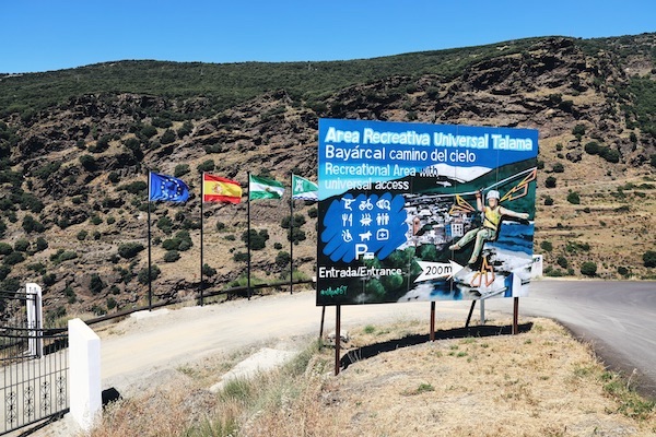 El Área Recreativa Universal Talama «Bayárcal Camino del Cielo» es un espacio al aire libre, gestionado por Be Natural Bayárcal SCA, ofrece turismo activo en el sector deportivo y el bienestar social como: senderismo, educación vial, yoga, mindfulness, parque biosaludable, actividades ambientales, talleres de artesanía, tiro al arco, cursos de inmersión lingüística, tours culturales por el municipio de Bayárcal, espacio al aire libre, restauración (bar restaurante) zona de barbacoa, siendo lo más destacable la tirolina, es la más larga de Andalucía, son más de 600 metros a 1295 metros de altitud, sobre el arroyo del Palancón. Abierto todos los días de 10:00 h a 19:00 h. El teléfono es: (+34)690149517. El Email: info@bnaturalsport.com La web: https://bnaturalsport.com/be-natural/ La dirección es AL-5402, Bayárcal, Almería.
