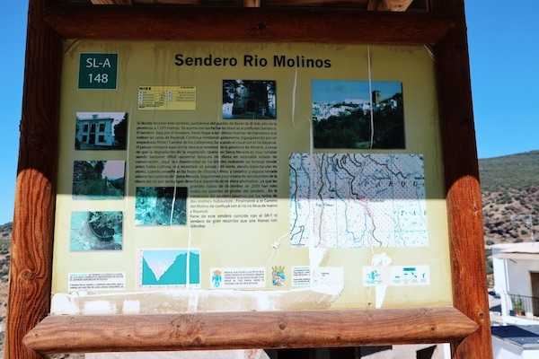 Salimos de nuestra casa con nuestro vehículo esta vez poniendo rumbo hasta el pueblo de Bayárcal, tuvimos un viaje de 40 minutos, unos 60 km. Aparcamos el vehículo a la entrada del pueblo, en una zona destinada a parking público, ya que muchas de sus calles no se puede circular, por ser muy estrechas. Es un pequeño pueblo, es aconsejable visitarlo a pie. ¡No olvides!, llevar un calzado cerrado y apropiado para caminar.