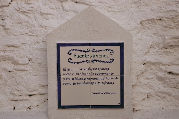 La Fuente Jiménez situada en el antiguo barrio bajo medieval de Bayárcal, siendo este manantial causa de la creación del asentamiento en la Alpujarra. Esto es debido a la agrupación de cuatro manantiales cercanos, que fueron sobre excavados mediante pequeñas galerías y embovedados con piedra seca, dando lugar a la canalización de los caudales subterráneos. En la fuente han colocado una losas de cerámica, donde se puede leer el siguiente texto: «El jardín nos regala sus aromas, mece el aire las hojas suavemente, y en las blancas espumas del torrente remojan sus plumajes las palomas» Francisco Villaespesa (poeta, dramaturgo y narrador español del modernismo). En el lugar hay un lavadero que ha nacido en el antiguo puente del camino real de Bayárcal, además en la zona, verás una pequeña área de descanso. El acceso es gratuito, espacio al aire libre.