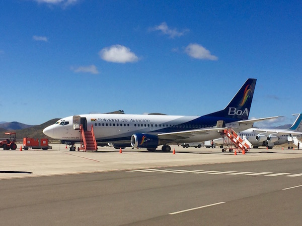 Aterrizamos en el Aeropuerto Internacional Alcantarí de nuestro vuelo procedente de Santa Cruz de la Sierra. El aeropuerto está situado en el municipio de Yamparáez, a 30,6 km de Sucre. Para desplazarnos desde el aeropuerto hasta Sucre cogimos un taxi, cuesta entre 100 a 120 bolivianos (12,53 a 15,03 € aprox.) También hay minibús, se encuentran estacionados a las puertas del aeropuerto. Tiene un coste de 10 bolivianos por persona (1,26 € aprox.) ¡Recuerda!, el billete se compra directamente al conductor y salen cuando se completan, el trayecto es de 1 h aproximadamente.