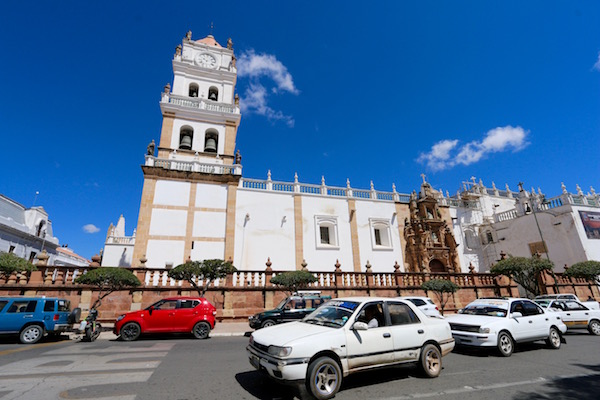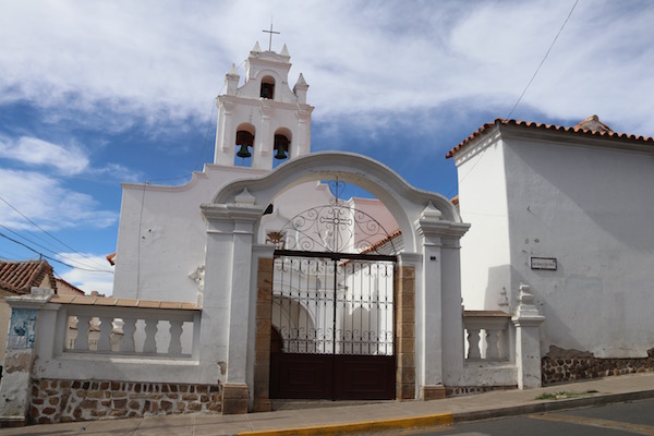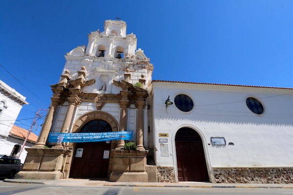 Acabada la visita partimos hasta llegar al centro histórico de Sucre, está declarado patrimonio de la Humanidad por la Unesco, pero antes nos detuvimos en la Iglesia de Santo Domingo, en el año 1545 fue fundada por los Dominicos, en un solar dado por Gonzalo Pizarro (conquistador) más tarde la iglesia se vería ampliada y reformada. Templo de tres naves, en su interior acoge a la imagen del Cristo del Gran Poder, una de las figuras más veneradas en el país. El acceso es gratuito. Abierto en horario de culto los lunes a las 7:00 h y 19:00 h, los domingos a las 7:30 h, 10:00 h, 12:00 h, 17:00 h y 18:30 h. Situado en la Calle Calvo núm. 101.