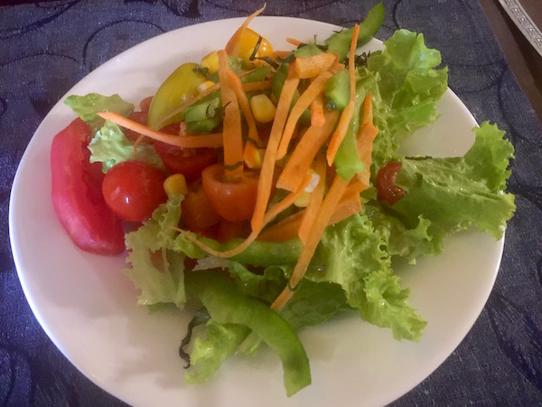 Decidimos almorzar en el Restaurante El Solar Café Bistro donde nos servimos ensalada del buffet, de planto principal, pedimos dos platos de saltimbocca, (rollos de ternera). De bebida dos botellas de agua mineral sin gas. Pagamos un total de 160 bolivianos (20,04 € aproximadamente). Ofrece comida sudamericana, española, fusión y opciones vegetarianas. Abierto de miércoles a lunes de 11:45 h a 15:00 h por la noche de 18:00 h a 23:00 h, los martes permanece cerrado. El teléfono de contacto es: +5914638132. La dirección es Nicolás Ortiz núm. 66.