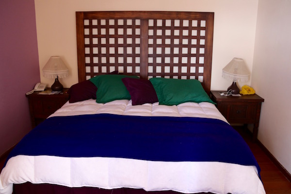 Una vez en la ciudad de Sucre bajamos a las puertas de Mi Pueblo Samary Hotel Boutique, alojamiento de cinco estrellas, donde pasaríamos dos noches. Pagamos por alojamiento+desayuno un total de 148 €. En sus inmediaciones acoge al consulado de Brasil. Tiene wifi gratis. El check-in a partir de las 12:00 h hasta las 00:00 h, el check-out de 5:00 h a 11:30 h. Aunque aún no era hora de hacer el check-in, el recepcionista fue muy amable, nos dio la habitación, la núm. 33, en la tercera planta. ¡Ojo!,no dispone de ascensor. El hotel se encuentra a 2.700 metros sobre el nivel del mar. Localizado a 450 metros del centro de Sucre. La dirección es calle Dalence núm. 349.