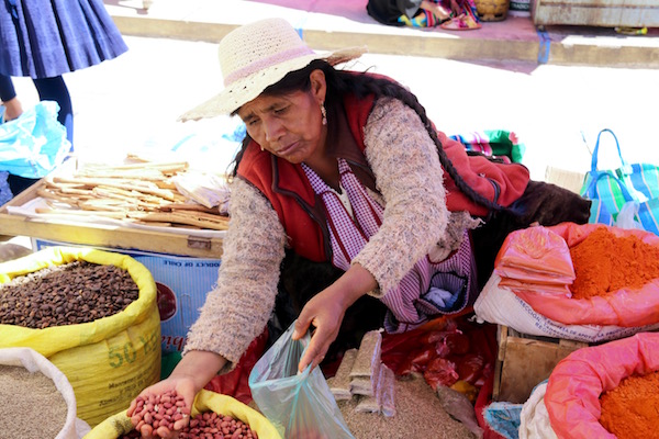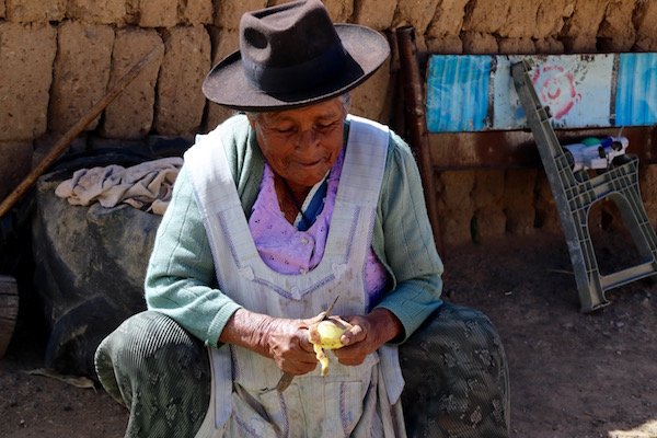 Tomamos algunas fotografías a varias indígenas de forma discreta, a mi Elisabeth, me gustó ver a esta mujer de la cultura Yampara, como pelaba las papas.
