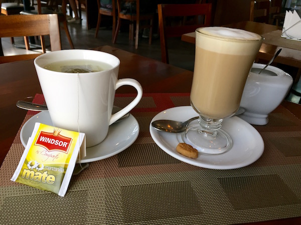 Decidimos ir a Metro Café Sucre donde nos tomamos uno un mate y el otro un café con leche. Pagamos un total de 25 bolivianos (3,16 € aprox.) Ofrece cafés, infusiones, pasteles, sandwiches, snack, refrescos, etc. Abierto de domingo a sábados de 8:00 h a 23:00 h. La dirección es Calle Calvo núm. 2.