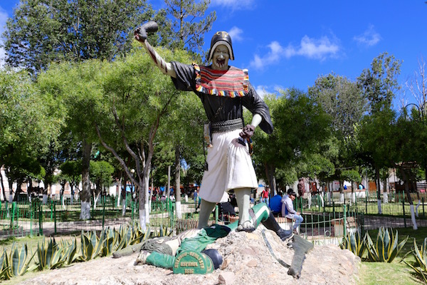 En la Plaza Central del pueblo hay una escultura de un indígena, sobre un soldado español, muestra que lo ha matado. Ya que se puede apreciar en una de sus manos como empuña el corazón con sangre, en otra un cuerno de animal que ha utilizado como recipiente para beber la sangre del enemigo.