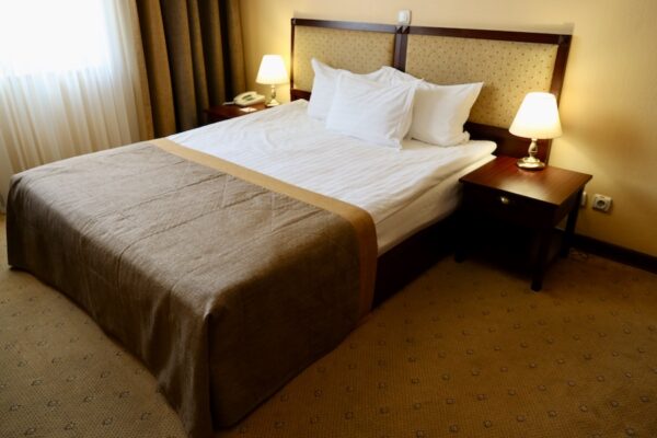 En la ciudad de Minsk nos hospedamos en el Hotel Minsk, hospedaje de cuatro estrellas, donde pasamos dos noches. Por la estancia de dos adultos en una habitación doble pagamos un total de 174,66 €. Entrada a partir de las 14:00 h, salida hasta las 12:00 h. No admiten mascotas. El teléfono es: +37517209062. Está a 1,1 kilómetros de distancia del centro de Minsk, prasp. Niezaliežnasci 11, Minsk, Minskaja voblasć, 220030, Bielorrusia.