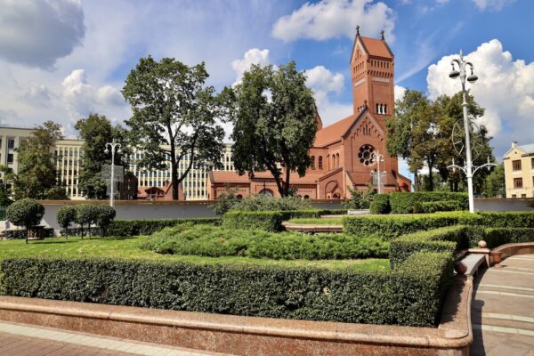 La Iglesia de los Santos Simón y Elena (Касцёл Святых Сымона і Алены), también es llamada “Iglesia Roja” templo católico de estilo neogótico, obra de los arquitectos polacos Wladyslaw Marconi y Tomasz Pajzderski, y construida entre 1905 y 1910. Los ladrillos de las paredes proceden de Częstochowa, las tejas de Włocławek. Esta edificación fue financiada por Edward Woynillowicz. El templo fue nombrado y consagrado en memoria de los hijos fallecidos de Woynillowicz llamados Szymon y Helena. ¡Recuerda!, vestir modestamente al visitar iglesias y sitios religiosos. En Bielorrusia las mujeres suelen cubrirse la cabeza para entrar en las iglesias.💰Entrada gratuita.⏱ Abierta de 7:00 h a 21:00 h, aunque cuando nosotros visitamos Minsk, estaba cerrada temporalmente por obras. ☎️ +375172004415.📬 Dirección: Plaza de la Independencia, Minsk, Belarus.