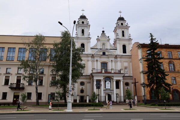 La Catedral de la Santísima Virgen María (Кафедральны сабор Найсвяцейшай Дзевы Марыі) templo católico de principios del siglo XVIII, construido en el convento de los jesuitas. La iglesia se vio dañada durante la Segunda Guerra Mundial, su estructura fue muy cambiada y adaptada a la sociedad del momento. En el año 2000 fue restaurada, actualmente es la principal iglesia católica de Minsk. El templo a lo largo de la historia ha sido visitado por personas históricas como: Pedro I, el rey Carlos XII de Suecia, Hetman Mazepa, Nicolás II, etc.💰La entrada es gratuita. ⏱ Abierta:, todos los días, de 9:00 h a 17:00 h. ☎️ +375173276609. 📬 Dirección: Cyril and Methodius St. 3, Minsk, Belarus.