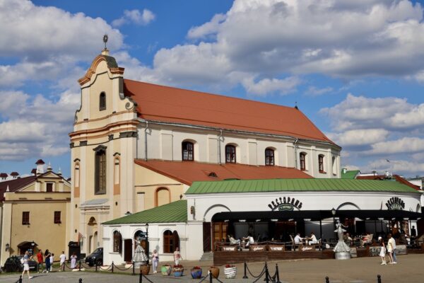La Iglesia de la Santísima Trinidad (Касцёл Найсвяцейшай Тройцы) templo católico, quedó consagrado en 1864. Su arquitectura en neogótica. En la década de 1930 la iglesia se cerró y los objetos de valor fueron saqueados por las autoridades soviéticas. Su renovación comenzó 1983. Actualmente, la iglesia funciona con centro religioso y monumento cultural, llevando a cabo servicios en varios idiomas.💰La entrada es gratuita. ⏱ Abierta:, de 9:00 h a 21:00 h. 📬 Dirección: Plaza Nezavisimosti 44A.