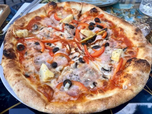 Cenamos en Pellegrino, restaurante italiano, donde probamos como entrante un aperitivo de alcachofas y aceitunas, de plato principal para uno fue un risotto con mariscos y para el otro una pizza caprichosa. De bebida una botella de agua mineral sin gas y un refresco. Pagamos un total de 113 BYN (29,41 €). ⏱ Abierto:, de 12:00 h a 24:00 h. ☎️ +375447529090. 📬 Dirección: Vulica Internacyjanaíneja 9, Minsk, Belarus.