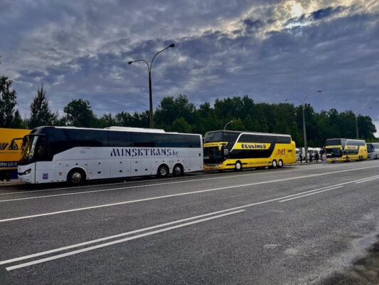 ¿Cómo llegar y salir de Bielorrusia?, los españoles y miembros de la UE no podemos viajar a Bielorrusia vía área, porque la UE ha impuesto sanciones contra Bielorrusia en respuesta a las elecciones fraudulentas de 2020, la represión, las violaciones de los derechos humanos y su complicidad en la agresión militar de Rusia a Ucrania. Estas medidas se prorrogaron por última vez hasta el 28 de febrero de 2026. Nosotros volamos desde el Aeropuerto de Málaga-Costa del Sol (España) hasta el Aeropuerto Internacional de Vilna (Lituania) con la compañía aérea W!ZZ, el viaje tuvo una duración de 4 h y 15 minutos, una vez allí, nos dirigimos a la estación de salida, terminal de llegadas del Aeropuerto de Vilna, Rodūnios Kelias 10A, 02188, Vilna (la parada de autobús se encuentra frente a la terminal de llegadas, cerca del aparcamiento Trumpalaikio Stovéjimo PC parking), para coger el autobús Toks con destino a la estación de autobuses de Minsk, el viaje fue de 7 horas, directo (bueno, se para en la frontera donde todos los pasajeros del autobús tienen que bajarse para pasar el control de seguridad). Para el regreso salimos desde la Central de Minsk para coger el autobús Ecolines con destino a Aeropuerto Internacional de Vilna (Lituania), el trayecto es directo, tardamos 18 horas (se para en la frontera donde todos los pasajeros del autobús tienen que bajarse para pasar el control de seguridad). ¡Atención!, estas fronteras están prohibidas cruzarlas a pie o en bicicleta. Estos tiempos tan largos para cruzar las fronteras no son normales, el recorrido se puede hacer en unas 3 horas.