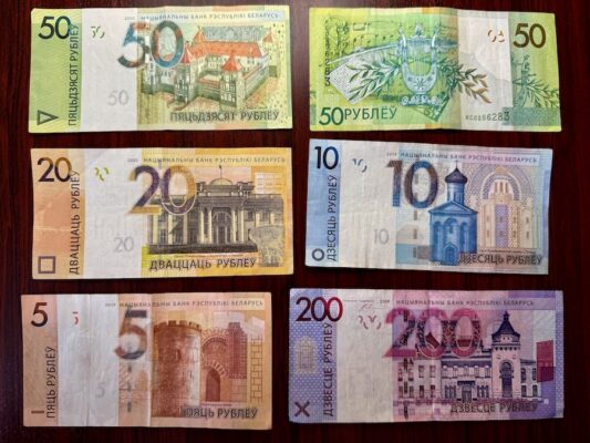 La moneda en Bielorrusia; es el rublo bielorruso, hay billetes de 5, 10, 20, 50, 100, 200, 500 BYN y monedas de 1, 2, 5, 10, 20, 50 kopeks, 1, 2 rublos. 1 € = 3,84 BYN. Los viajeros y turistas pueden pagar en moneda local o con tarjetas de crédito como Visa o Mastercard, son ampliamente aceptadas en hoteles, restaurantes, cafeterías, supermercados, museos y centros comerciales. Debes utilizar los puntos de cambio oficiales para evitar estafas o falsificaciones de moneda. Acude a bancos y casas de cambio oficiales, cajeros automáticos, hoteles y centros comerciales. Evita los cambios callejeros, ¡Recuerda!, el cambio de moneda con proveedores no autorizados es ilegal y puede dar lugar a estafas o billetes falsos. ¡Atención!, los pagos sin contacto como Apple Pay, Google Pay están ganando popularidad en las zonas urbanas, pero aún no está disponible en todos los establecimientos de grandes ciudades como Minsk.