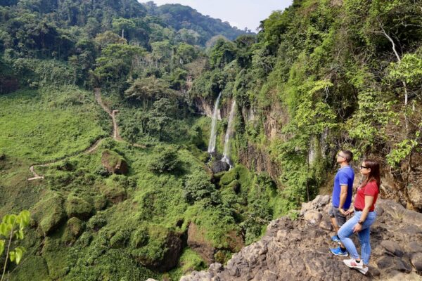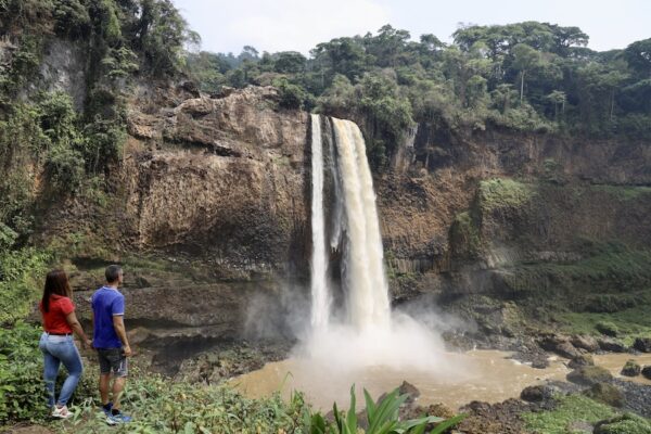 2-Chutes d’Ekom Nkam (Cascadas de Ekom Nkam) el nombre deriva del pueblo que comparte el mismo nombre, son dos caídas de agua, tienen 80 metros de altura. Han pasado a ser las cascadas más impresionantes de Camerún. Aquí se rodó algunas escenas de la película “Greystoke, la leyenda de Tarzán, el rey de los monos” en 1982 con Christophe Lambert. Caminamos por dos senderos en la selva, contemplando desde diferentes ángulos estos saltos de agua. ¡Recuerda!, la mejor época para ver las cataratas son entre los meses de noviembre y abril, es cuando tienen más caudal. La entrada de ingreso a las cataratas para adultos extranjeros tiene un valor de 3000 XAF por persona (4,57 €). Para poder tomar fotografías y grabaciones tendrás que abonar 500 XAF por dispositivo (0,76 €). Se encuentran en el río Nkam, en medio de un bosque selvático, en la parte norte del departamento de Moungo, dentro de la Región Litoral, en la parte suroeste de Camerún. La dirección es Nkongsamba, Cameroun.