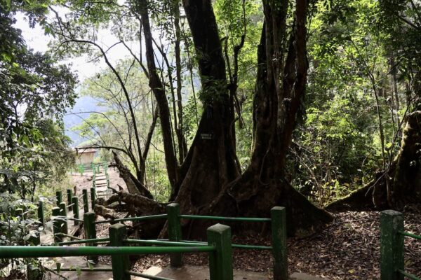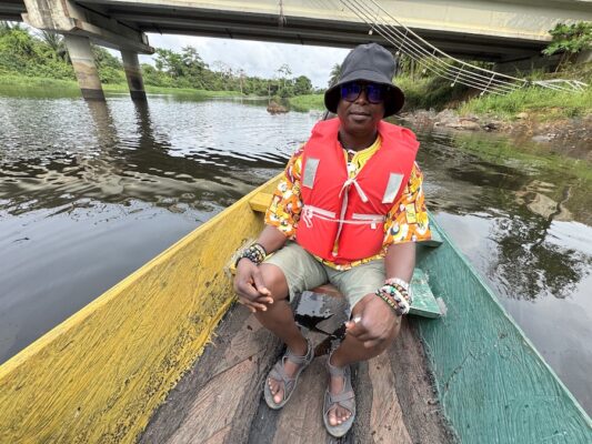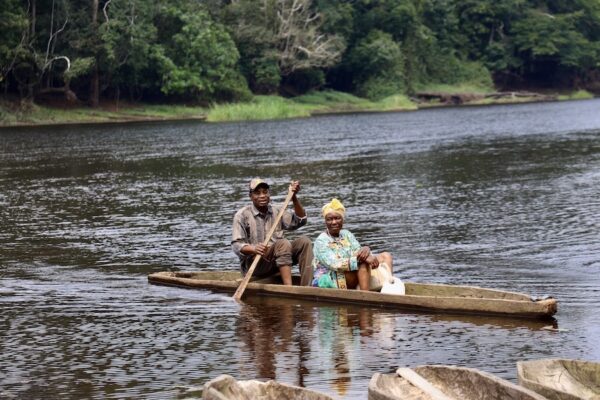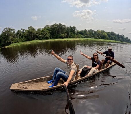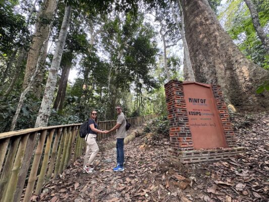 Aquí nosotros llevamos a cabo una excursión en canoa por el río Nyong en el entorno del bosque tropical. Pudimos ver y escuchar pájaros. El recorrido fue de una hora. Después bajamos de la embarcación para comenzar una pequeña caminata que nos llevó a ver un Sapelli es un árbol grande, nativo de África tropical, este tiene tres siglos de antigüedad, un gigante monumental con un diámetro de más de 9 metros y una altura de 85 metros. Por esta actividad pagamos 10000 XAF por persona (15,24 €).