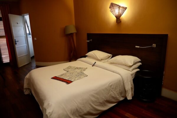 En la ciudad de Duala, nos hospedamos en Faya Hotel, hospedaje de cuatro estrellas, donde pasamos dos noches, la primera del viaje y la última. Lo teníamos incluido en el paquete turístico alojamiento+desayuno. La entrada a partir de las 15:00 h hasta las 00:00 h, salida desde la 1:00 h hasta las 12:00 h. Cuenta con internet gratuito en todo el hotel. Dispone de parking gratuito en el propio establecimiento, no es necesario reservar. No admiten mascotas. La web: https://www.fayahotel.com El Email: reservations@fayahotel.com Situado a 400 metros del centro de Duala, la dirección es Boulevard de L’Unite, Douala, Cameroun.