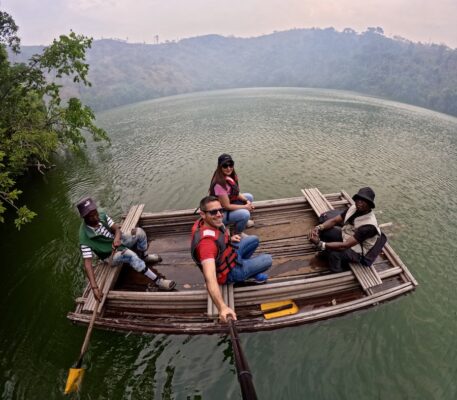 Lac Baleng (Lago Baleng) lago del cráter formado tras una erupción volcánica que se remonta a varios millones de años. Situado a una altitud de 1500 metros sobre el nivel del mar. Este pintoresco lago, rodeado de exuberante vegetación y colinas. Está incluido en la lista del patrimonio nacional como elemento del patrimonio cultural inmaterial desde el año 2020. La orilla del lago es un sitio sagrado para los baleng, donde acuden a menudo a realizar rituales y consideran las aguas del lago una fuente de purificación. El acceso es a través de una larga escalera, que tendrás que descender hasta llegar directamente al borde del río. Aquí pudimos disfrutar de un paseo en una barca tradicional. Las visitas son guiadas por guías locales, cuesta 15000 XAF por persona (22,87 €). Se encuentra en la jefatura de Baleng, comuna de Bafoussam II, Cameroun.