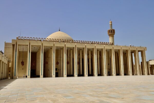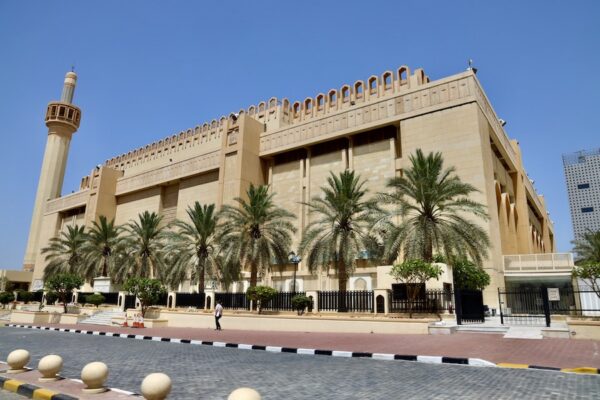 La Gran Mezquita es la mezquita más grande de Kuwait, abarca una superficie de 45.000 m². La sala de oración principal tiene 72 metros de ancho. Inaugurada en 1986 tiene una capacidad para acoger a 11.000 fieles, tiene vidrieras francesas, detalles en mármol italiano, mosaicos marroquíes, lámparas de araña alemanas, madera de teca india, cúpula central bañada en oro. La obra costó 14 millones de dinares kuwaitíes. Sobrevivió por completo a la invasión iraquí. En una vidriera se puede ver una réplica del Corán más antiguo del mundo. La sala principal abierta para la oración los viernes y festivos. En la mezquita hay guías oficiales que ofrecen visitas guiadas mostrando la cultura de Kuwait y permiten acceder a la habitación privada del emir. ¡Atención!, las mujeres tienen que llevar abaya (vestido largo similar a una túnica) y (hiyab) pañuelo. Si no tienes, no te preocupes, la propia mezquita deja prestado una túnica de color dorado. 💰La entrada es gratuita. ⏱ Abierta de 8:00 h a 20:00 h. ☎️ El teléfono es: +96522342367. 📬 La dirección es 25, Kuwait City, Kuwait.