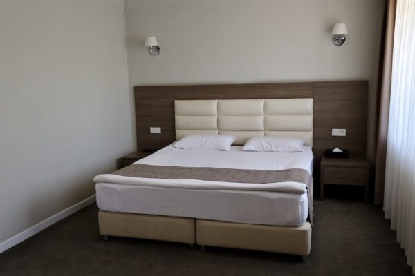 En la ciudad de Osh nos hospedamos en Grand Chavo Osh Hotel, hospedaje de tres estrellas, donde pasamos una noche. Aquí teníamos incluido alojamiento+desayuno. La entrada de las 14:00 h a las 00:00 h y salida hasta las 12:00 h. Hay wifi gratuito en todo el establecimiento. Dispone de parking gratis privado en el establecimiento, no es necesario reservar. No admiten mascotas. ☎️ +996555521077. 📬 Está a tan solo 900 metros del centro de la ciudad, la dirección es 280 Kurmanjan-Datka St, Бишкек 723500, Kirguistán.