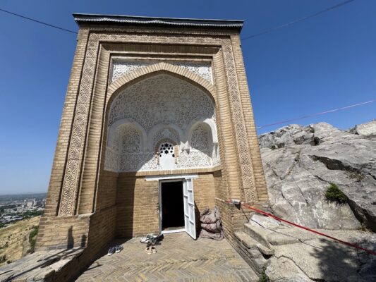 Sulaiman Too también es llamado Montaña del Trono de Sulaiman, considerado uno de los lugares más sagrados de Asia Central para los musulmanes, porque según cuenta, el profeta Mahoma oró una vez en él. Roca calcárea de cinco picos y laderas que se extiende de oeste a este a lo largo de 1140 metros. Domina el paisaje circundante del valle de Fergana y constituye el telón de fondo de la ciudad de Osh. Aquí encontrarás varios monumentos históricos: cuevas sagradas, grietas, mezquitas y museo. El paraje cuenta con diecisiete lugares de culto que aún se usan conectados por senderos, se piensa que estos sitios de culto curan la esterilidad, dolor de espalda, cabeza y otorga la bendición de la longevidad. Es el único lugar declarado Patrimonio de la Humanidad ubicado íntegramente en Kirguistán. El museo de la cueva fue edificado en la época soviética e inaugurado en 1949, tiene trece salas dentro de una estructura de cueva con dos niveles distintos para exposiciones. En él se exhiben más de 3300 piezas (hallazgos arqueológicos, artefactos, etnográficos, pinturas, esculturas, colecciones gráficas regionales, artesanías, etc.) La estructura del museo está integrado directamente en la montaña Sulaiman, que recibió la designación de Patrimonio Mundial de la Unesco en 2009.💰La entrada al recinto de Sulamain Too para adulto tiene un coste de 70 KGS por persona (0,69 €), los niños de 7 a 16 años pagarán 50 KGS por visitante (0,49 €).⏱ Abierto en enero, febrero, marzo, noviembre y diciembre de 9:00 h a 18:00 h, en abril, mayo, septiembre y octubre de 9:00 h a 19:00 h, de junio, julio y agosto de 9:00 h a 20:00 h. ¡Recuerda!, el último lunes de cada mes permanece cerrado a las visitas por limpieza. ¡Ojo!, para poder visitar el museo cueva tendrás que pagar otra entrada de 100 KGS por persona (0,98 €). Abierto de 9:00 h a 18:00 h. Para ingresar a Sulaiman Too tendrás una caminata en ascensión por unas escaleras, unos 20 minutos aproximadamente. 📬 Dirección Mountain Sulaiman Too, Osh, 714000 Kirguistán.