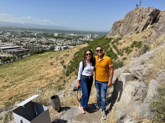 Para salir de Osh cruzamos a pie la frontera terrestre entre Kirguistán y Uzbekistán, en el paso Osh-Andijan, está abierta 24 horas los 7 días de la semana. ¡Recuerda!, esta frontera es la más común entre los dos países y es muy fácil de cruzar. Aquí encontramos oficinas para cambiar dinero a ambos lados de la frontera, locales con venta de comida, recuerdos, etc. Desde Osh hay constantemente transporte hasta esta frontera, puedes usar Yandex (como Uber), también hay autobuses y taxis. Desde Andijan también se puede llegar en autobús o Yandex. Nosotros llegamos a Tayikistán desde Uzbekistán cruzando otro paso fronterizo, la frontera de Konibodom-Beshariq (Patar), en el valle de Ferganá. La frontera está al oeste de la ciudad de Kokand. Nosotros en la parte uzbeka nos reunimos con un conductor local que nos llevó hasta el puesto fronterizo de Uzbekistán Tayikistán. Fue fácil entrar porque no había cola y en pocos minutos ya estábamos en Tayikistán. ¡Ojo!, no hay transporte público, no existe autobuses públicos ni marshrutkas para entrar a Tayikistán o viceversa. Solo podrás ir en taxi compartido local o en tu propio vehículo. Aquí nos esperaba el conductor tayiko y el vehículo 4×4 que teníamos reservado para ir hasta la ciudad Khujand (Tayikistán).