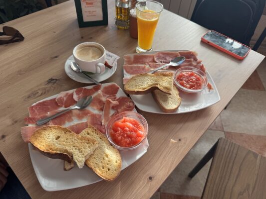 Desayunamos en el Área de Servicio Ciudad de Huéscar, aquí pedimos un café con leche, un zumo de naranja y dos medias tostadas de jamón serrano con tomate. Para personas con intolerancia no dispone de leche sin lactosa, avena o soja. Pagamos un total de 9 €. Aceptan pagos en efectivo y con tarjeta de crédito. ☎️ El teléfono es: (+34)606023471.⏱ Abierto de 7:00 h a 00:00 h, permanece cerrado los martes. 📬 La dirección es Carretera de Cúllar-Huéscar, km 27, 18830, Huéscar, Granada.