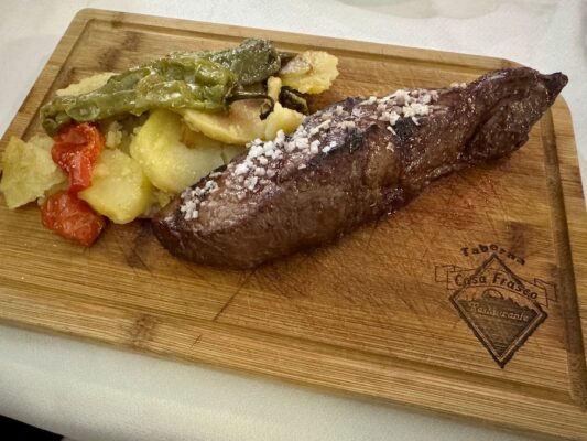 Almorzamos en el Restaurante Casa Frasco, donde pedimos como entrante unas tostas de anchoa mariposa sobre salmorejo de remolacha, y un revuelto de temporada, de plato principal para uno fue un solomillo de ternera y para el otro una presa de cerdo. De bebida una botella de agua mineral sin gas. De postre un café con leche y una infusión. 💰Pagamos un total de 79 €. ¡Recuerda!, es aconsejable reservar. mesa para fines de semana y días festivos. ☎️ El teléfono es: 646010530. ⏱ Abierto de 12:00 h a 18:00 h y de 19:00 h a 23:30 h, los sábados y domingos 12:00 h a 18:00 h y de 19:00 h a 24:00 h, permanece cerrado los lunes. 📬 La dirección es Calle Padrón, 6, 14880, Luque, Córdoba.