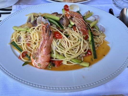Una comida la hicimos en Bella Vista, restaurante italiano, donde pedimos como entrante una ensalada nicoise, plato principal para uno fue una pizza cuatro estaciones y para el otro un plato de espaguetis reda (almejas, gambas, calabacines y tomates frescos). De bebida una botella de agua mineral sin gas. Pagamos un total de 66 €. Aceptan pagos en efectivo y con tarjeta de crédito.⏱ El horario de apertura de 7:00 h a 23:30 h. ☎️ El teléfono es: +37793504202. El Email: info@bellavita.mc La web: https://www.bellavita.mc 📬 La dirección es 21 Rue Princesse Caroline, 98000, Monaco, Mónaco.