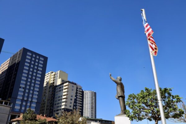 El Boulevard y Estatua de Clinton (Bulevardi dhe Statuja Klinton) Estados Unidos fue uno de los países que más apoyó a Kosovo durante la guerra y luego durante su proceso de independencia. Los kosovares en forma de gratificación llamaron a la avenida más grande de la ciudad de Pristina “Boulevard Bill Clinton” En esta avenida podrás ver la Estatua del expresidente Clinton, monumento en bronce de más de 3 metros de altura, Clinton tiene el brazo izquierdo levantado y en su brazo derecho lleva unos documentos en los que está grabada la fecha en la que comenzó la campaña de la OTAN contra Yugoslavia, el 24 de marzo de 1999. Tras el monumento en la fachada de un edificio se puede ver una pancarta gigante con la bandera de Kosovo, un retrato del expresidente americano y la bandera de Estados Unidos.💰 El acceso es gratuito espacio al aire libre.⏱ Abierto 24 h. 📬 Se encuentra en Bill Clinton Bulvarı.