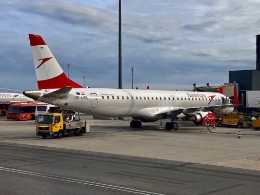 Volamos con la compañía área Austrian Airlines (la aerolínea de bandera de Austria) desde el Aeropuerto de Málaga-Costa del Sol (España) hasta el Aeropuerto de Viena-Schwechat (Austria), el viaje tuvo una duración de 3 h y 50 minutos, en Viena tuvimos una escala de 5 h y 55 minutos, pasado este tiempo, volvimos a subirnos en otro avión de la misma compañía aérea con destino al Aeropuerto Internacional de Priština (Kosovo), el viaje fue de 1 h y 30 minutos. La vuelta fue desde el Aeropuerto Internacional de Priština (Kosovo) al Aeropuerto de Viena-Schwechat (Austria), el viaje tuvo una duración de 1 h y 35 minutos, en Viena tuvimos una escala de 3 h 15 minutos, pasado este tiempo, volvimos a subirnos en otro avión de la misma compañía aérea con destino al Aeropuerto de Málaga-Costa del Sol (España). Por los pasajes de dos adultos pagamos un total de 1144,34 €. En el precio nos incluía una maleta de equipaje de mano de 8 kilogramos, con las siguientes medidas: 55 x 40 x 23 cm, un pequeño bolso o mochila y selección de asientos. La web: https://www.austrian.com/es/es/homepage