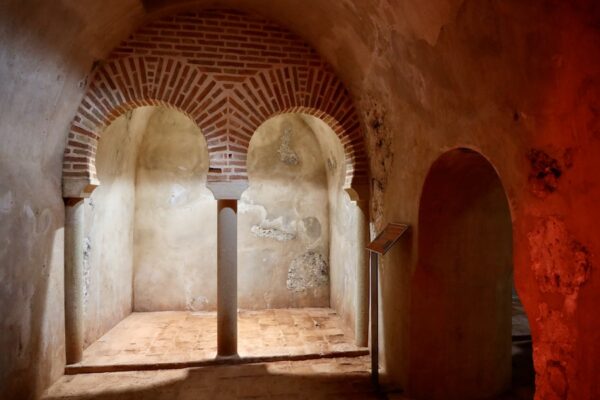 Los Baños Árabes, modalidad de baño a vapor que incluye limpiar el cuerpo y relajarse, también función social, porque servían de punto de encuentro. Aquí se conservan los restos más antiguos de toda la estructura de la fortaleza. Donde podrás ver un vídeo en 3D, con la recreación de los diferentes periodos del Castillo de Segura y sus baños.
