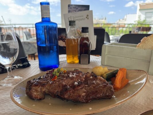 Nosotros almorzamos en el Restaurante El Pámpano, donde pedimos como entrante una ensalada de brevas y un pulpo a la brasa, de plato principal para compartir un chuletón de ternera. De bebida una botella de agua mineral sin gas. De postre dos cafés con leche, para personas con intolerancia dispone de leche sin lactosa, avena y soja. Pagamos un total de 72, 60 €. Aceptan pagos en efectivo y con tarjeta de crédito. ☎️ El teléfono es: (+34)951832810. Para fines de semana y días festivos es aconsejable reservar mesa, ya que tiene mucha demanda en la zona.⏱ El horario de apertura lunes cerrado, martes abierto a las 17:00 h, los miércoles, jueves, viernes, sábados y domingos desde las 12:00 h hasta el cierre, almuerzo servido desde las 13:00 h hasta las 16:00 h, la cena de 19:00 h a 23:00 h. La web: https://www.restauranteelpampanocompeta.com/es/📬 Ubicado en Av. de Nerja, 52, 29754, Cómpeta, Málaga.