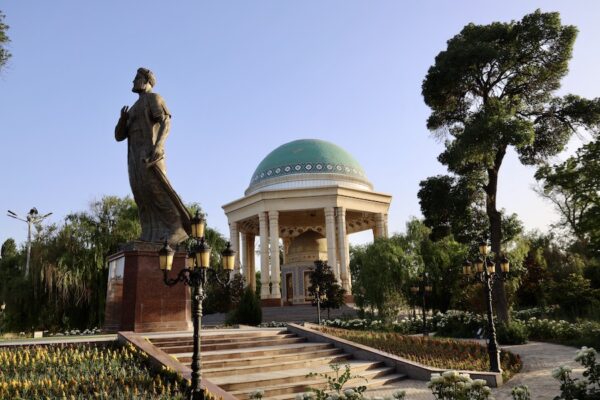 El Parque Ismail Samani cuenta con fuentes y una amplia escalera que conduce desde los niveles inferiores hasta la estatua de Ismail (fue un líder, el más famoso del imperio Samánida, que gobernó Transoxiana y Jorasán entre 819 y 999 d.C.) muestra a él vestido con el atuendo real, sosteniendo una corona y un cetro con forma de sol en su mano derecha.💰 El acceso es gratuito, espacio al aire libre. ⏱ Abierto 24 h. 📬 La dirección es Parque Ismail Samani, Khujand, Tayikistán.