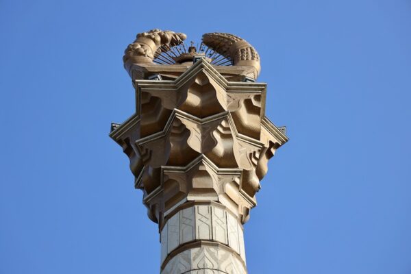 Detalles de la Estela con el Emblema Estatal de Khujand, Tayikistán.