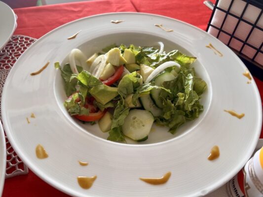 Almorzamos en el Restaurante Liopa, donde pedimos como entrante dos ensaladas (mixta y de queso). De plato principal, arroz de marisco y bistec de ternera. Para beber, dos refrescos y una botella de agua mineral sin gas. Pagamos un total de 51.900,00 Kz (48,33 €). Abre de 9:00 h a 23:00 h. Su teléfono es: +244934465050. La dirección es R44W-MQV, Namibe, Angola.