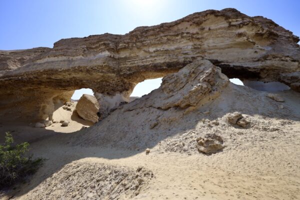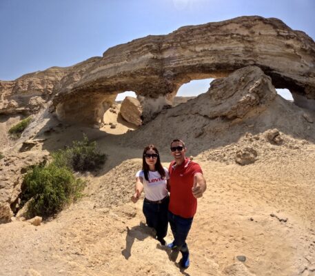 14- Lagoa dos Arcos (Laguna de Arcos) fue un oasis en medio del desierto de Namib; un paraíso con abundante fauna y un paraje fundamental para las comunidades locales. Consta de tres lagunas, siendo la del medio la más famosa. Desde el año 2014, estas lagunas están totalmente secas. Su nombre hace referencia a los dos arcos situados en medio de la laguna. Cuando llegues a la zona, se acercará un hombre del pueblo para enseñarte el lugar y pedirte una donación para la comunidad:💰5.000 Kz por persona (4,66 €). La caminata por el sendero de arena dura unos diez minutos. 📬 Se localiza en la provincia de Namibe, entre las ciudades de Namibe y Tombwa, en la margen derecha del río Curoca, (entre las aldeas de Nonguai y Camilunga).