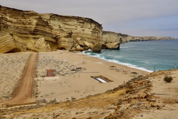 8- Praia do Soba (Playa de Soba) Considerada una de las playas más bonitas de Angola, se encuentra rodeada de acantilados y desierto. ¡Importante! Es una playa privada perteneciente al lodge “Praia do Soba”. La web: https://praiadosobanamibe.com/atividades/ El Email: praiadosobareservas@gmail.com ☎️ El teléfono es: (+244)922502665. 💰 Para el acceso se debe abonar una tasa de ingreso de 2.000 Kz por persona (1,86 €). 📬 ¿Cómo llegar? Desde la ciudad de Moçâmedes, conduce unos 60 km por la EN100 hasta las coordenadas 14°48’05.1″S 12°26’08.2″E. Allí, gira a la izquierda por el camino de tierra. A partir de este punto, es imprescindible usar un vehículo 4×4; el recorrido restante dura aproximadamente una hora.