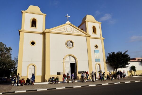 Igreja Paroquial de Santo Adrião (Iglesia Parroquial de San Adrian) Templo católico cuya construcción comenzó el 27 de julio de 1849 y finalizó en la década siguiente. Edificada en adobe, cuenta con dos torres y un cuerpo central ligeramente adelantado, rematado por un frontón triangular.💰El acceso es gratuito. ⏱Abierta en horario de culto. 📬 Está en R43R+4XV, Moçâmedes (Namibe), Angola.
