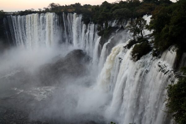 2- Quedas de Kalandula (Cataratas de Kalandula): antiguamente eran conocidas como Quedas do Duque de Bragança (Cataratas del Duque de Braganza) durante la era colonial de Angola. El nombre cambió tras la independencia para hacer honor a la aldea de Kalandula. Son unas cascadas situadas en el municipio homónimo, en la provincia de Malanje, al norte del país. Con su caída en forma de herradura, una longitud de 410 metros y una altura de 105 metros, son el salto de agua más grande de Angola y las segundas cataratas más importantes de África, tras la Cataratas Victoria. Alimentadas por el río Lucala —el afluente más relevante del río Kwanza—, se encuentran rodeadas de selva. Es una joya escondida; apenas son conocidas y reciben muy poco turismo, principalmente de lugareños. Existen leyendas locales vinculadas a ella, por lo que el paraje tiene una gran importancia espiritual para las comunidades cercanas. Puedes disfrutar de vistas panorámicas desde varios puntos. Existe una ruta a pie de unos 40 minutos para llegar a la base; el sendero es rocoso y con desnivel, pero permite ver de cerca la caída. También hay un mirador junto a la Pousada Quedas Duque de Bragança. ¡Ten en cuenta! Durante la temporada de lluvias (de octubre a abril) es cuando tiene más caudal. Para llegar, se recomienda un vehículo 4×4, porque el camino es accidentado y en épocas de lluvias el acceso se complica. La mayoría de los viajeros llegan en coche de alquiler o en un tour organizado desde Luanda, en un trayecto de unas 5 horas y media (367 km).
