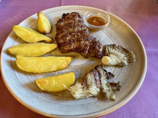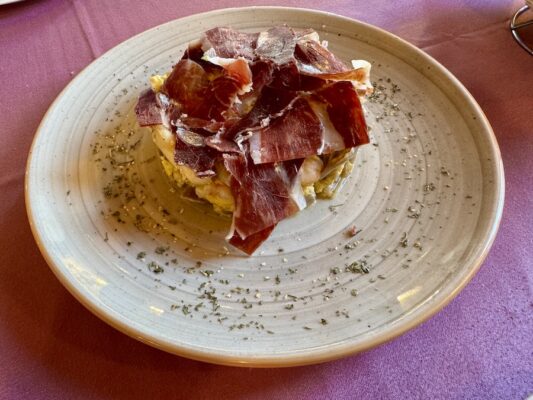 Almorzamos en la Taberna de Miguel de Huércal de Almería, pedimos como entrante media ensalada mixta, un revuelto de setas con gambas y jamón, de plato principal una pluma ibérica de bellota y un lomo de bacalao con costra de mousse de ali-oli. De bebida una botella de agua mineral sin gas. De postre un café con leche y una infusión. Pagamos un total de 72 €. ☎️ El teléfono es: 620033927. ⏱ Abierto martes y domingo de 13:00 h a 16:00 h, los miércoles, jueves, viernes y sábados de 13:00 h a 16:00 h y de 20:00 h a 23:15 h, los lunes permanece cerrado. 📬 La dirección es Calle Erasmo de Rotterdam, 1, 04230, Huércal de Almería, (Almería).