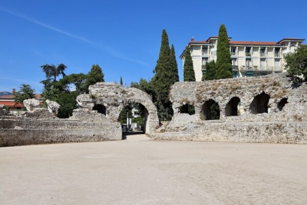 Las Arenas de Cimiez anfiteatro construido en dos etapas en los siglos II y III, quedó abandonado en el siglo IV, pero no fue hasta la década de 1930 y luego a principios del siglo XXI cuando comenzaron las excavaciones y sacaron a la luz sus restos. Ahora es usado para eventos y festejos. Tiene una capacidad para 4000 espectadores.💰 El acceso es gratuito cuando no hay espectáculo o festejos.⏱ Abierto de 8:30 h a 20:00 h. 📬 El sitio se encuentra junto a los antiguos baños termales de la ciudad antigua y el Museo Arqueológico de Niza.